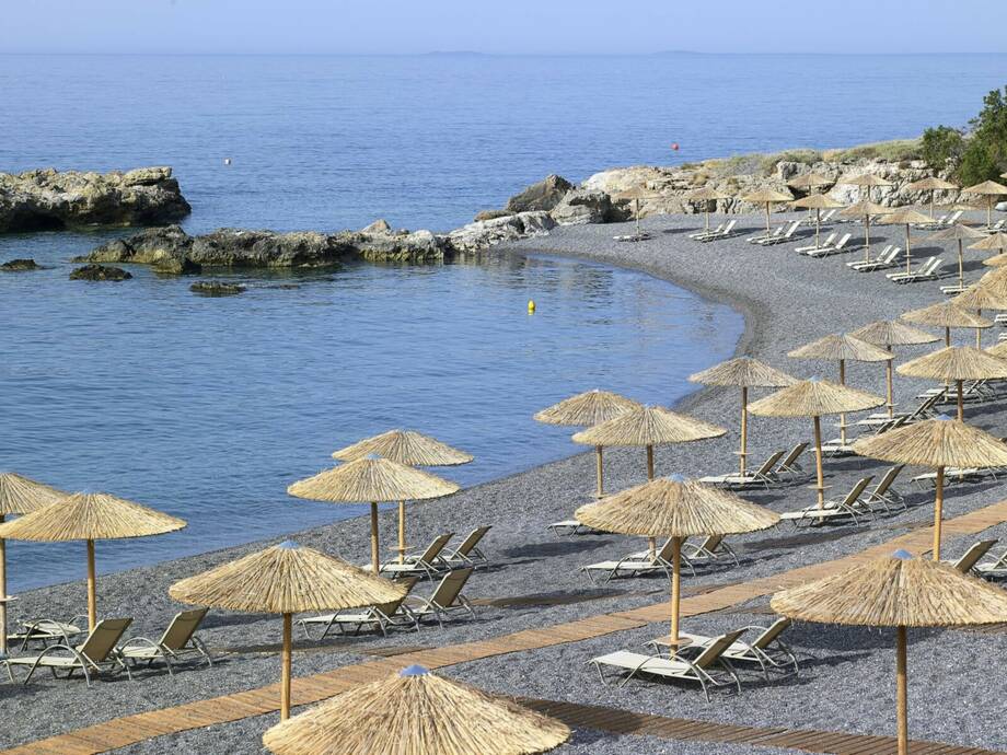 Anlage: familiär geführtes Hotel mit 84 Zimmern, in einer schönen Gartenanlage direkt am Meer, Minimarkt, 1 Restaurant , 1 Taverne, 1 Bar und 1 Swimming-Pool mit Sonnenterrasse; Liegen und Schirme im Poolbereich gratis/ am Strand gegen Gebühr
